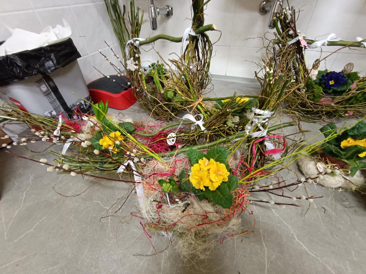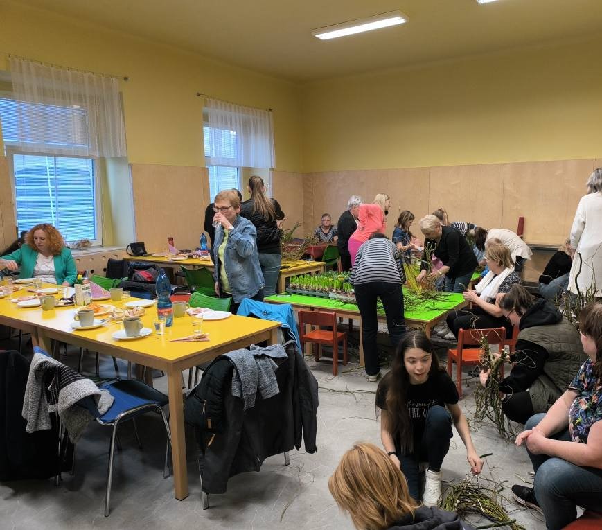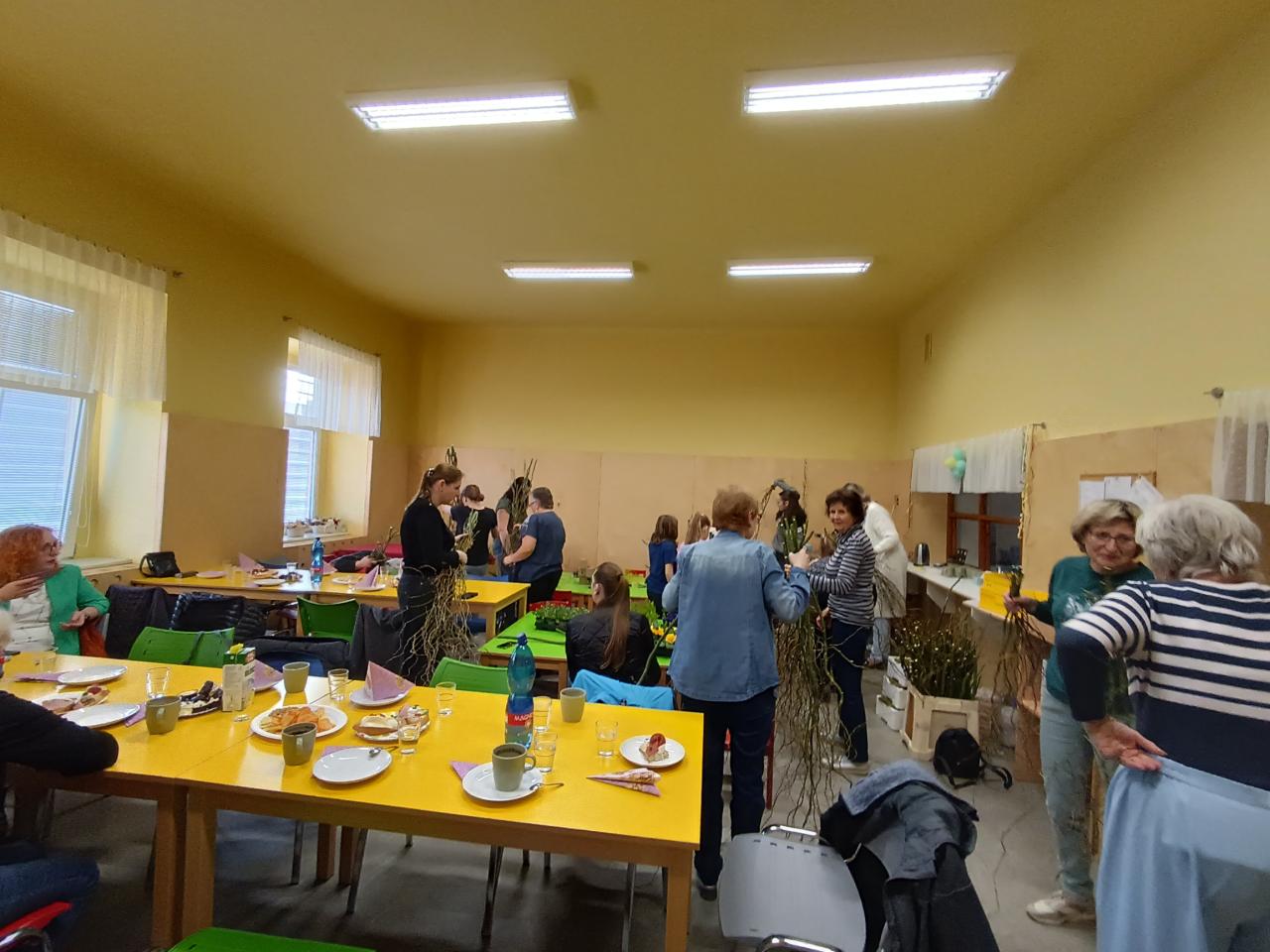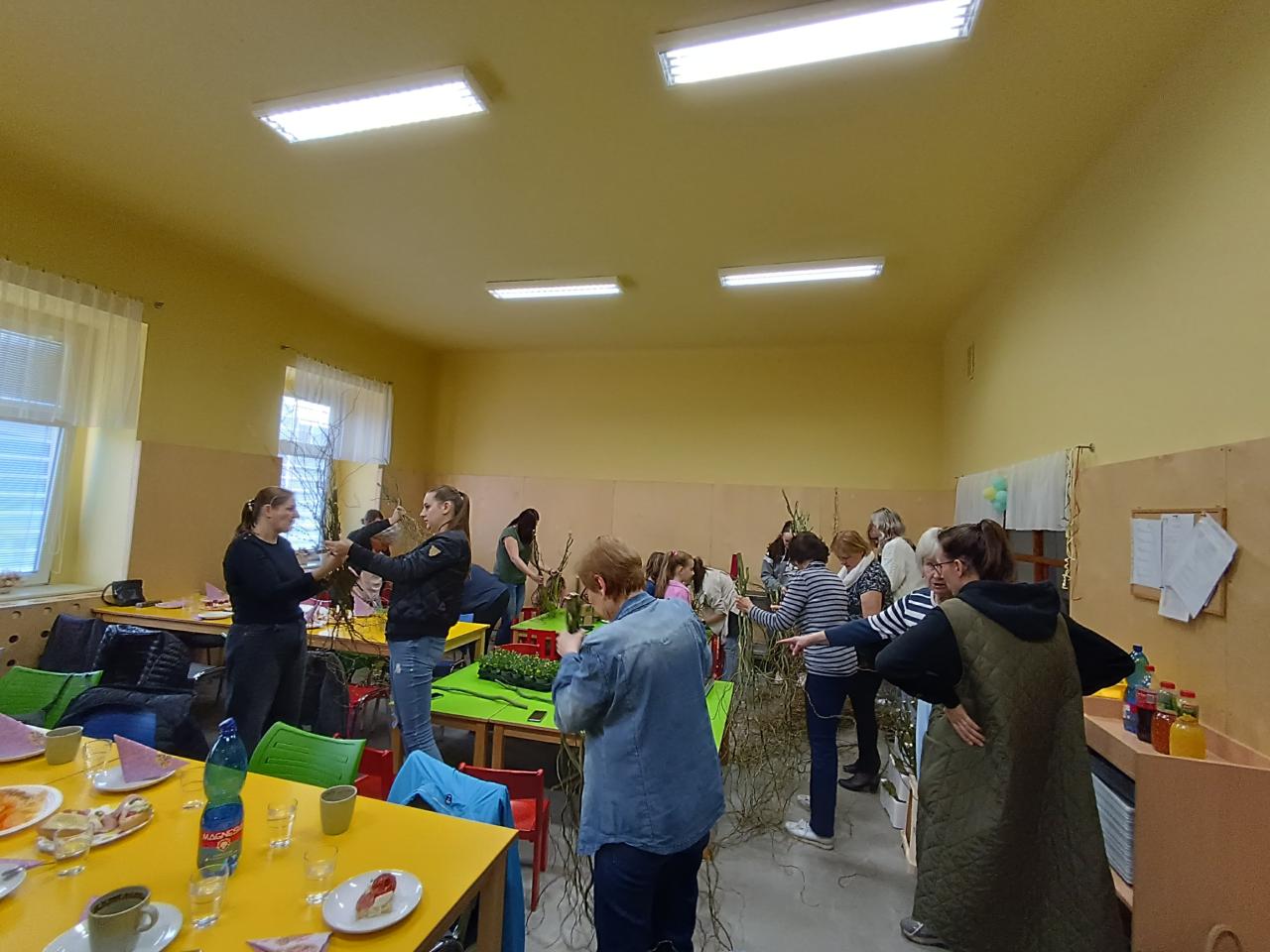 Jarní tvoření k MDŽ. Společné posezení u kávy a drobného občerstvení. S floristkou jsme letos vyzkoušely složitější osázení hnízda, ale každý to zvládl výborně. Děkujeme za účast.